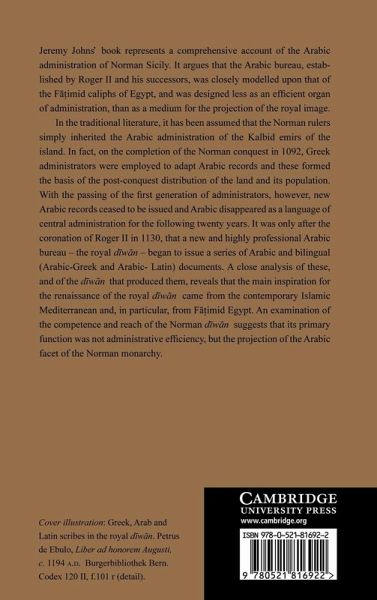 In the late eleventh century, Sicily - originally part of the Islamic world - was captured by Norman, French and Italian adventurers, led by Roger de Hauteville. For the next 150 years, Roger and his descendants ruled the island and its predominantly Arabic-speaking Muslim population. Jeremy Johns' 2002 book represents a comprehensive account of the Arabic administration of Norman Sicily. While it has generally been assumed that the Normans simply inherited their Arabic administration from the Muslim governors of the island, the author uses the unique Sicilian Arabic documents to demonstrate that the Norman kings restructured their administration on the model of the contemporary administration of Fatimid Egypt. Controversially, he also suggests that, in doing so, their intention was not administrative efficiency but the projection of their royal image. This is a compelling and accessible account of the Norman rulers and how they related to their counterparts in the Muslim Mediterranean.
