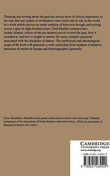 Thinking and writing about the past has always been of critical importance to the way that any culture or civilization views itself and its role in the world. In a work which surveys an entire tradition of historical thought and writing across a span of eight hundred years, Tarif Khalidi examines how Arabic-Islamic culture of the pre-modern period viewed the past, how it recorded it, and how it sought to answer the many complex questions associated with the discipline of history. The author combines a chronological and a topical approach to place the tradition within its wider intellectual context, while quotations from historians across the period introduce the English-speaking reader to some of the principal texts of Arabic-Islamic culture.