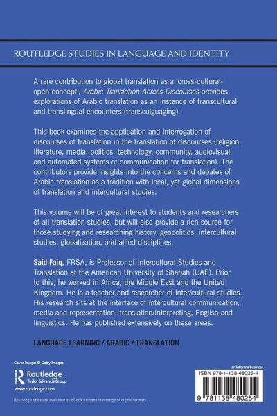 A rare contribution to global translation as a "cross-cultural-open-concept," Arabic Translation Across Discourses provides explorations of Arabic translation as an instance of transcultural and translingual encounters (transculguaging).