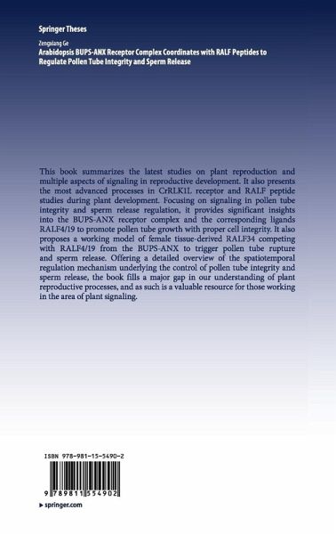 This book summarizes the latest studies on plant reproduction and multiple aspects of signaling in reproductive development. It also presents the most advanced processes in CrRLK1L receptor and RALF peptide studies during plant development. Focusing on signaling in pollen tube integrity and sperm release regulation, it provides significant insights into the BUPS-ANX receptor complex and the corresponding ligands RALF4/19 to promote pollen tube growth with proper cell integrity. It also proposes a working model of female tissue-derived RALF34 competing with RALF4/19 from the BUPS-ANX to trigger pollen tube rupture and sperm release. Offering a detailed overview of the spatiotemporal regulation mechanism underlying the control of pollen tube integrity and sperm release, the book fills a major gap in our understanding of plant reproductive processes, and as such is a valuable resource for those working in the area of plant signaling.