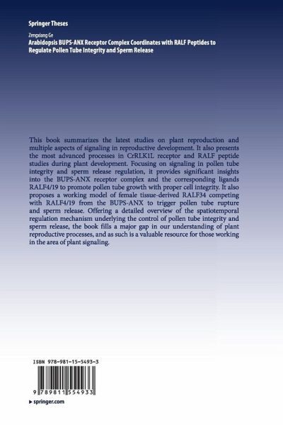 This book summarizes the latest studies on plant reproduction and multiple aspects of signaling in reproductive development. It also presents the most advanced processes in CrRLK1L receptor and RALF peptide studies during plant development. Focusing on signaling in pollen tube integrity and sperm release regulation, it provides significant insights into the BUPS-ANX receptor complex and the corresponding ligands RALF4/19 to promote pollen tube growth with proper cell integrity. It also proposes a working model of female tissue-derived RALF34 competing with RALF4/19 from the BUPS-ANX to trigger pollen tube rupture and sperm release. Offering a detailed overview of the spatiotemporal regulation mechanism underlying the control of pollen tube integrity and sperm release, the book fills a major gap in our understanding of plant reproductive processes, and as such is a valuable resource for those working in the area of plant signaling.