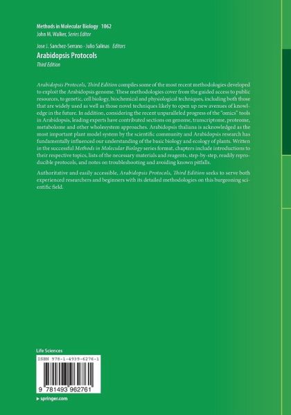 Arabidopsis Protocols, Third Edition compiles some of the most recent methodologies developed to exploit the Arabidopsis genome. These methodologies cover from the guided access to public resources, to genetic, cell biology, biochemical and physiological techniques, including both those that are widely used as well as those novel techniques likely to open up new avenues of knowledge in the future. In addition, considering the recent unparalleled progress of the "omics" tools in Arabidopsis, leading experts have contributed sections on genome, transcriptome, proteome, metabolome and other…mehr