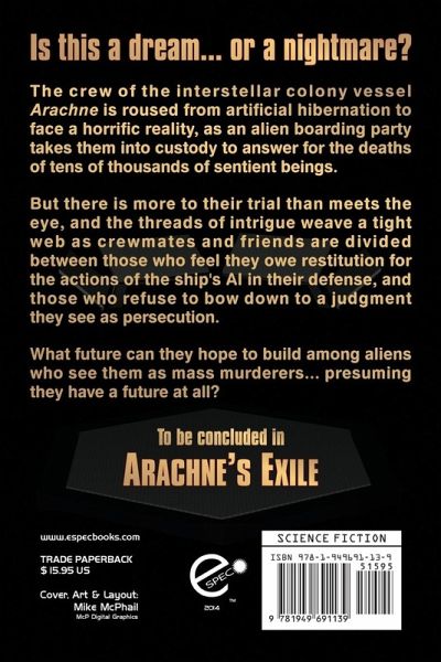 Is this a dream... or a nightmare? The crew of the interstellar colony vessel Arachne is roused from artificial hibernation to face a horrific reality, as an alien boarding party takes them into custody to answer for the deaths of tens of thousands of sentient beings. But there is more to their trial than meets the eye, and the threads of intrigue weave a tight web as crewmates and friends are divided between those who feel they owe restitution for the actions of the ship's AI in their defense, and those who refuse to bow down to a judgment they see as persecution. What future can they hope to build among aliens who see them as mass murderers... presuming they have a future at all?