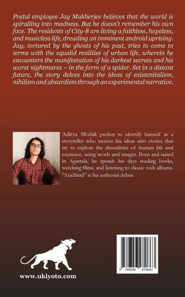 Postal employee Jay Mukherjee believes that the world is spiralling into madness. But he doesn't remember his own face. The residents of City-8 are living a faithless, hopeless, and musicless life, dreading an imminent android uprising. Jay, tortured by the ghosts of his past, tries to come to terms with the squalid realities of urban life, wherein he encounters the manifestation of his darkest secrets and his worst nightmares - in the form of a spider. Set in a distant future, the story delves into the ideas of existentialism, nihilism and absurdism through an experimental narrative.