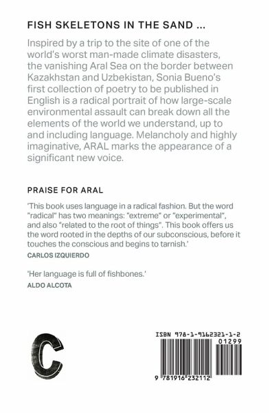 The Aral Sea, or Sea of Islands, was a vast lake on the border between Uzbekistan and Kazakhstan which has now all but disappeared since the Soviet government diverted the lake's two main feeder rivers in the 1960s, in order to try to irrigate the desert. This quixotic plan was a tragic failure: the local environment has been irreversibly altered. Sonia Bueno, a young Spanish poet with a complicated relation to her country (she is from the Spanish North African enclave of Melilla), travelled to the Aral Sea in the early 2010s to see one of the world's worst man-made climate disasters. Aral is her account of this journey, to a shrunken lake, a growing desert, and the human ruins that surround them. Written in an oblique, fragmentary style, these poems are a collection of impressions of an environment that is hard for the mind to grasp. Translated into English by the poet and translator James Womack, this is a collection which is unafraid to pose far-reaching and complicated questions.