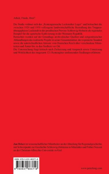 Die Studie widmet sich der «Rentengutssache Lockstedter Lager» und beleuchtet die zwischen 1920 und 1930 vollzogene landwirtschaftliche Besiedlung des Truppenübungsplatzes Lockstedt in der preußischen Provinz Schleswig-Holstein als regionales Beispiel für die agrarische Kultivierung in der Weimarer Republik.
