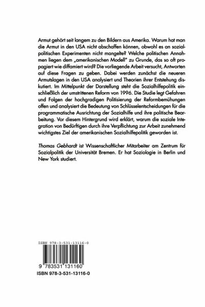 Armut gehört seit langem zu den Bildern aus Amerika. Warum hat man die Armut in den USA nicht abschaffen können, obwohl es an sozialpolitischen Experimenten nicht mangelte? Welche politischen Annahmen liegen dem "amerikanischen Modell" zu Grunde, das so oft propagiert wie diffamiert wird? Diese Arbeit versucht, Antworten auf diese Fragen zu geben. Dabei werden zunächst die neueren Armutslagen in den USA analysiert und Theorien ihrer Entstehung diskutiert. Im Mittelpunkt der Darstellung steht die Sozialhilfepolitik einschließlich der umstrittenen Reform von 1996. Die Studie legt Gefahren und Folgen der hochgradigen Politisierung der Reformbemühungen offen und analysiert die Bedeutung von Schlüsselentscheidungen für die programmatische Ausrichtung der Sozialhilfe und ihre politische Bearbeitung. Vor diesem Hintergrund wird erklärt, warum die soziale Integration von Bedürftigen durch ihre Verpflichtung zur Arbeit zunehmend wichtigstes Ziel der amerikanischen Sozialhilfepolitik geworden ist.