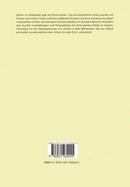 0. Einleitung.- 1. Fragestellung, Aufbau der Untersuchung, Forschungsansatz und Methoden.- A. Das gesellschaftliche Problem ehrenamtlicher Arbeit.- 2. Zur Analyse ehrenamtlicher sozialer Arbeit als Form gesellschaftlicher Arbeit.- B. Die Ergebnisse der Untersuchung.- 3. Die ausgewählten Zielgruppen ehrenamtlicher Arbeit.- 4. Die Untersuchungsgruppen und Ihre Dachorganisationen.- 5. Zur Analyse der institutionellen Rahmenbedingungen ehrenamtlicher sozialer Arbeit.- 6. Zur Analyse der Arbeit der ehrenamtlich Tätigen.- 7. Vorstellungen zur besseren Gestaltung der ehrenamtlichen Arbeit im Interesse der ehrenamtlich Arbeitenden und derjenigen, die durch ehrenamtliche Arbeit betreut warden.- 8. Perspektiven der ehrenamtlichen sozialen Arbeit.- Anmerkungen.- Literatur.