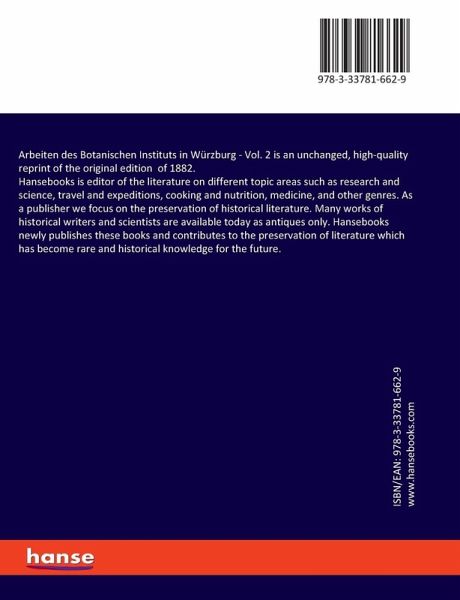 Arbeiten des Botanischen Instituts in Würzburg - Vol. 2 is an unchanged, high-quality reprint of the original edition of 1882.