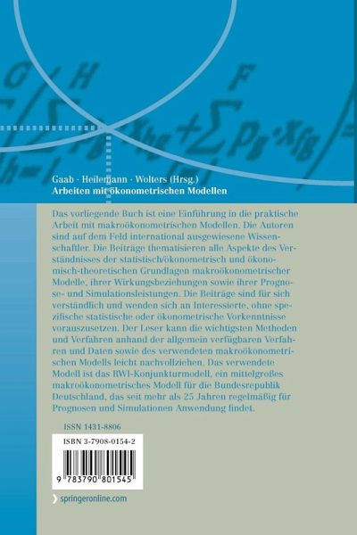 Das vorliegende Buch ist eine Einführung in die praktische Arbeit mit makroökonometrischen Modellen. Die Autoren sind auf dem Feld international ausgewiesene Wissenschaftler. Die Beiträge thematisieren alle Aspekte des Verständnisses der statistisch/ökonometrisch und ökonomisch-theoretischen Grundlagen makroökonometrischer Modelle, ihrer Wirkungsbeziehungen sowie ihrer Prognose- und Simulationsleistungen. Die Beiträge sind für sich verständlich und wenden sich an Interessierte, ohne spezifische statistische oder ökonometrische Vorkenntnisse vorauszusetzen. Der Leser kann die wichtigsten Methoden und Verfahren anhand der allgemein verfügbaren Verfahren und Daten sowie des verwendeten makroökonometrischen Modells leicht nachvollziehen. Das verwendete Modell ist das RWI-Konjunkturmodell, ein mittelgroßes makroökonometrisches Modell für die Bundesrepublik Deutschland, das seit mehr als 25 Jahren regelmäßig für Prognosen und Simulationen Anwendung findet.