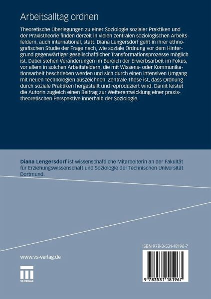 Theoretische Überlegungen zu einer Soziologie sozialer Praktiken und der Praxistheorie finden derzeit in vielen zentralen soziologischen Arbeitsfeldern, auch international, statt. Diana Lengersdorf geht in ihrer ethnografischen Studie der Frage nach, wie soziale Ordnung vor dem Hintergrund gegenwärtiger gesellschaftlicher Transformationsprozesse möglich ist. Dabei stehen Veränderungen im Bereich der Erwerbsarbeit im Fokus, vor allem in solchen Arbeitsfeldern, die mit Wissens- oder Kommunikationsarbeit