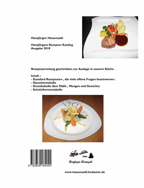 Hansjürgens Rezeptur Katalog Ausgabe 2010 zur Auslage in unserer KücheInhalt :RezepturenMengentabelleGarzeitentabelleSchnittformenliste