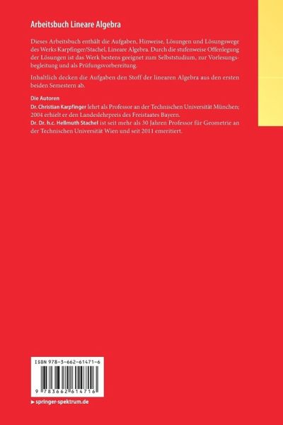 Dieses Arbeitsbuch enthält die Aufgaben, Hinweise, Lösungen und Lösungswege des Werks Karpfinger/Stachel, Lineare Algebra.