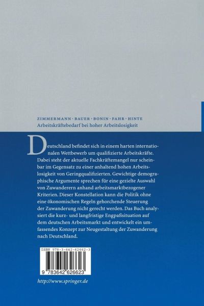 Deutschland befindet sich in einem harten internationalen Wettbewerb um qualifizierte Arbeitskräfte. Dabei steht der aktuelle Fachkräftemangel nur scheinbar im Gegensatz zu einer anhaltend hohen Arbeitslosigkeit von Geringqualifizierten. Gewichtige demographische Argumente sprechen für eine gezielte Auswahl von Zuwanderern anhand arbeitsmarktbezogener Kriterien. Dieser Konstellation kann die Politik ohne eine ökonomischen Regeln gehorchende Steuerung der Zuwanderung nicht gerecht werden. Das Buch analysiert die kurz- und langfristige Engpaßsituation auf dem deutschen Arbeitsmarkt und entwickelt ein umfassendes Konzept zur Neugestaltung der Zuwanderung nach Deutschland.