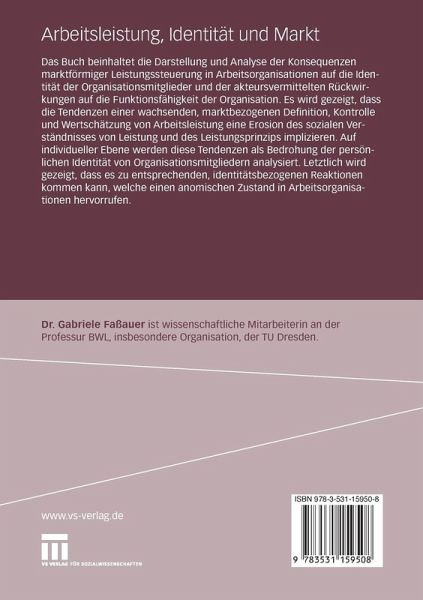 Das Buch beinhaltet die Darstellung und Analyse der Konsequenzen marktförmiger Leistungssteuerung in Arbeitsorganisationen auf die Identität der Organisationsmitglieder und der akteursvermittelten Rückwirkungen auf die Funktionsfähigkeit der Organisation. Es wird gezeigt, dass die Tendenzen einer wachsenden, marktbezogenen Definition, Kontrolle und Wertschätzung von Arbeitsleistung eine Erosion des sozialen Verständnisses von Leistung und des Leistungsprinzips implizieren. Auf individueller Ebene werden diese Tendenzen als Bedrohung der persönlichen Identität von Organisationsmitgliedern analysiert. Letztlich wird gezeigt, dass es zu entsprechenden, identitätsbezogenen Reaktionen kommen kann, welche einen anomischen Zustand in Arbeitsorganisationen hervorrufen.