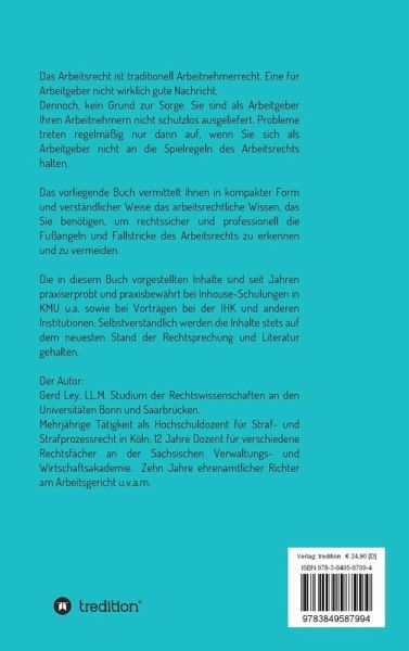 Gerd Ley, LL.M. Studium der Rechtswissenschaften an den Universitäten Bonn und Saarbrücken. Mehrjährige Tätigkeit als Hochschuldozent für Straf- und Strafprozessrecht in Köln. 12 Jahre Dozent für verschiedene Rechtsfächer an der Sächsischen Verwaltungs- und Wirtschaftsakademie. Zehn Jahre ehrenamtlicher Richter am Arbeitsgericht u.v.a.m.