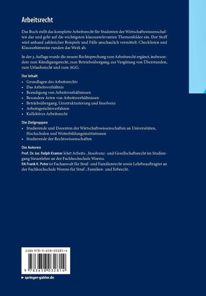 Prof. Dr. iur. Ralph Kramer lehrt Arbeits-, Insolvenz- und Gesellschaftsrecht im Studiengang Steuerlehre an der Fachhochschule Worms. RA Frank K. Peter ist Fachanwalt für Straf- und Familienrecht sowie Lehrbeauftragter an der Fachhochschule Worms für Straf-, Familien- und Erbrecht.