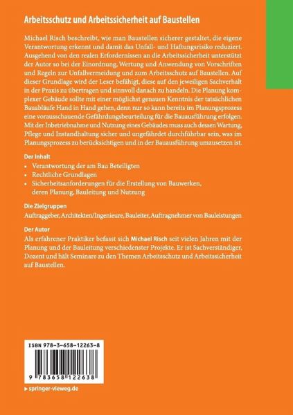 Michael Risch beschreibt, wie man Baustellen sicherergestaltet, die eigene Verantwortung erkennt und damit das Unfall- undHaftungsrisiko reduziert. Ausgehend von den realen Erfordernissen an dieArbeitssicherheit unterstützt der Autor so bei der Einordnung, Wertung undAnwendung von Vorschriften und Regeln zur Unfallvermeidung und zumArbeitsschutz auf Baustellen. Auf dieser Grundlage wird der Leser befähigt,diese auf den jeweiligen Sachverhalt in der Praxis zu übertragen und sinnvolldanach zu handeln. Die Planung komplexer Gebäuden sollte mit einer möglichstgenauen Kenntnis der tatsächlichen Bauabläufe Hand in Hand gehen, denn nur sokann bereits im Planungsprozess eine vorausschauende Gefährdungsbeurteilung fürdie Bauausführung erfolgen. Mit der Inbetriebnahme und Nutzung eines Gebäudes mussauch dessen Wartung, Pflege und Instandhaltung sicher und ungefährdet durchführbarsein, was im Planungsprozess zu berücksichtigen und in der Bauausführungumzusetzen ist.