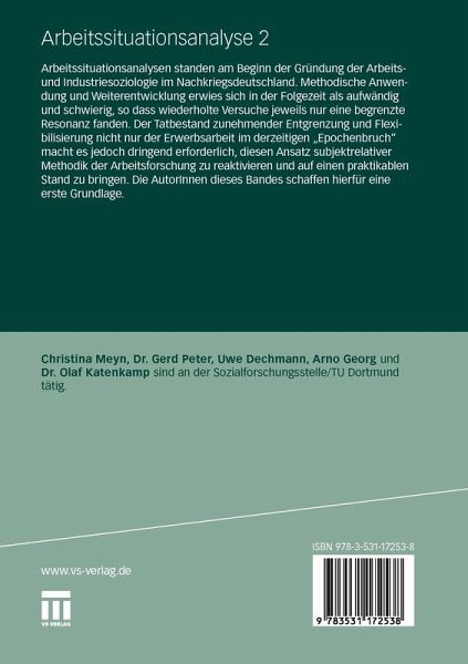Arbeitssituationsanalysen standen am Beginn der Gründung der Arbeits- und Industriesoziologie im Nachkriegsdeutschland. Methodische Anwendung und Weiterentwicklung erwies sich in der Folgezeit als aufwändig und schwierig, so dass wiederholte Versuche jeweils nur eine begrenzte Resonanz fanden. Der Tatbestand zunehmender Entgrenzung und Flexibilisierung nicht nur der Erwerbsarbeit im derzeitigen "Epochenbruch" macht es jedoch dringend erforderlich, diesen Ansatz subjektrelativer Methodik der Arbeitsforschung zu reaktivieren und auf einen praktikablen Stand zu bringen. Die AutorInnen dieses Bandes schaffen hierfür eine erste Grundlage.