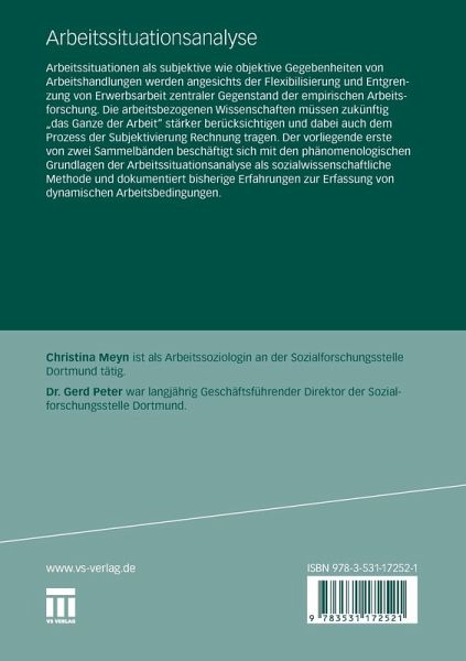Arbeitssituationen als subjektive wie objektive Gegebenheiten von Arbeitshandlungen werden angesichts der Flexibilisierung und Entgrenzung von Erwerbsarbeit zentraler Gegenstand der empirischen Arbeitsforschung. Die arbeitsbezogenen Wissenschaften müssen zukünftig "das Ganze der Arbeit" stärker berücksichtigen und dabei auch dem Prozess der Subjektivierung Rechnung tragen. Der vorliegende erste von zwei Sammelbänden beschäftigt sich mit den phänomenologischen Grundlagen der Arbeitssituationsanalyse als sozialwissenschaftliche Methode und dokumentiert bisherige Erfahrungen zur Erfassung von dynamischen Arbeitsbedingungen.