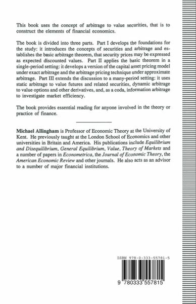 A text using the concept of arbitrage to value securities, that is to construct the elements of financial economics. Divided into three parts, the book develops the foundations for the study, applies the basic theorem in a single-period setting and extends the discussion to a many-period setting.