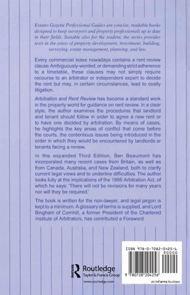 Arbitration and Rent Review has become a standard work in the property world for guidance on rent review. In a clear style, the author examines the procedures that landlord and tenant should follow in order to agree a new rent or to have one decided by arbitration. By means of cases, he highlights the key areas of conflict that come before the courts, the contentious issues being introduced in the order in which they would be encountered by landlords or tenancts facing a review.