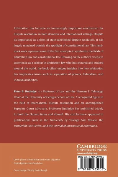 Arbitration has become an increasingly important mechanism for dispute resolution, both in the domestic and international setting. Despite its importance as a form of state-sanctioned dispute resolution, it has largely remained outside the spotlight of constitutional law. This landmark work represents one of the first attempts to synthesize the fields of arbitration law and constitutional law. Drawing on the author's extensive experience as a scholar in arbitration law who has lectured and studied around the world, the book offers unique insights into how arbitration law implicates issues such as separation of powers, federalism and individual liberties.