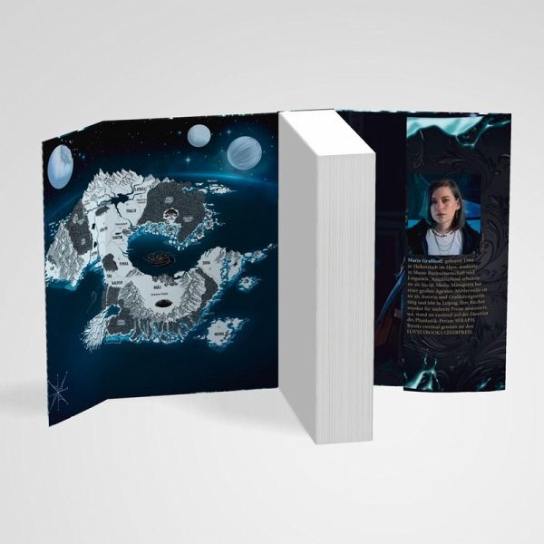 Das Cover des Buches ist wieder ein Hingucker, unterscheidet sich jedoch nur in der Farbe zum ersten Teil. Es spiegelt die Atmosphäre des Buches aber perfekt wieder und passt mit seinem eindrucksvollen Farbschnitt auch wunderbar zum ersten Band. Es lässt sich sehr angenehm öffnen, ohne dass Leserillen entstehen und liegt wunderbar in der Hand.