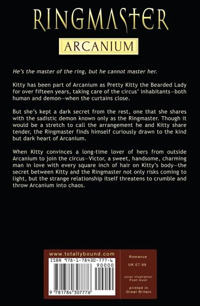 He's the master of the ring, but he cannot master her. Kitty has been part of Arcanium as Pretty Kitty the Bearded Lady for over fifteen years, taking care of the circus' inhabitants-both human and demon-when the curtains close. But she's kept a dark secret from the rest, one that she shares with the sadistic demon known only as the Ringmaster. Though it would be a stretch to call the arrangement he and Kitty share tender, the Ringmaster finds himself curiously drawn to the kind but dark heart of Arcanium. When Kitty convinces a long-time lover of hers from outside Arcanium to join the circus-Victor, a sweet, handsome, charming man in love with every square inch of hair on Kitty's body-the secret between Kitty and the Ringmaster not only risks coming to light, but the strange relationship itself threatens to crumble and throw Arcanium into chaos.