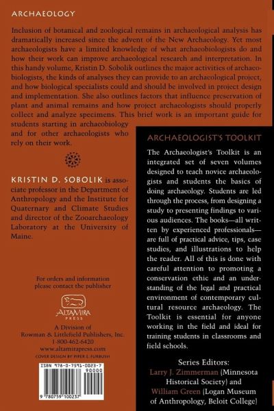 [Sobolik] offers what she believes to be the 'best and easist ways' to interpret archaeobiological remains, providing literature sources and diverse case studies largely, though not exclusively, drawn from projects she hsa worked on. This gives her readers an intimate portrait of the goals, processes, and results of projects. On this level, the book functions as a primer, which is its greatest strength. Crm: The Journal Of Heritage Stewardship This easy-to-read text is part of the Archaeologist's ToolKit discussing archezoology, taphonomy, recovery techniques and analysis of archaeological materials. Journal Of The American Assn. Of Forensic Dentists, 4-6-04