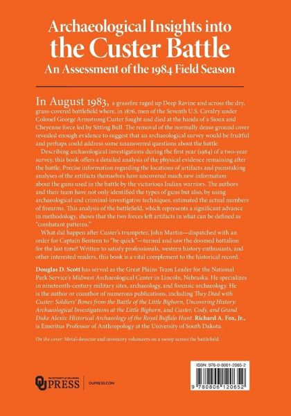 In August, 1983, a grassfire raged up Deep Ravine and across the dry, grass-covered battlefield where, in 1876, men of the Seventh U.S. Cavalry under George Armstrong Custer had fought and died at the hands of a Sioux and Cheyenne force led by Sitting Bull. The removal of the normally dense ground cover revealed enough evidence to suggest that an archaeological survey would be fruitful and perhaps could address some unanswered questions about the battle. Describing archaeological investigations during the first year (1984) of a two-year survey, this book offers a detailed analysis of the physical evidence remaining after the battle. Precise information regarding the locations of artifacts and painstaking analyses of the artifacts themselves have uncovered much new information about the guns used in the battle by the victorious Indian warriors. Not only have the types of guns been identified, but through the use of archaeological and criminal-investigative techniques the actual numbers of firearms can now be estimated. This analysis of the battlefield, which represents a significant advance in methodology, shows that the two forces left artifacts in what can be defined as "combatant patterns." What did happen after Custer’s trumpeter, John Martin-dispatched with an order for Captain Benteen to "be quick"-turned and saw the doomed battalion for the last time? Written to satisfy both professional and layman, this book is a vital complement to the historical record.