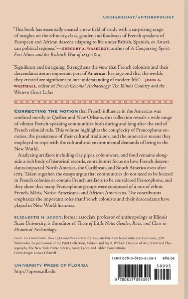 Correcting the notion that French influence in the Americas was confined mostly to Québec and New Orleans, this collection reveals a wide range of vibrant French-speaking communities in the Americas both during and long after the end of French colonial rule. Analyzing artifacts including clay pipes, colonoware, and food remains alongside a rich body of historical records, contributors focus on how French descendants impacted North America, the Caribbean, and South America even after 1763. They argue that communities do not need to be located in French colonies or contain French artifacts to be considered Francophone, and they show that many Francophone groups were composed of a complex mix of ethnic French, Métis, Native Americans, and African Americans. This volume emphasizes that French colonists and their descendants have played an important role in New World histories.