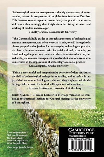 Archaeological resource management (ARM) is the practice of recording, evaluating, preserving for future research and presenting to the public the material remains of the past. Almost all countries uphold a set of principles and laws for the preservation and professional management of archaeological remains. This book offers a critical and comparative perspective on the law and professional practices of managing archaeological remains. Beginning with a global history of ARM, John Carman provides an overview of legal and professional regulations governing ARM today. He then turns to consider the main practices involved in managing archaeological remains, namely, their identification and recording, their evaluation for 'significance', their preservation and their presentation to the public. As a whole, the book offers an overview of what ARM 'does' in the world, with implications for understanding the role of archaeology as a contemporary set of practices that determine how future generations will access material remains of the past.