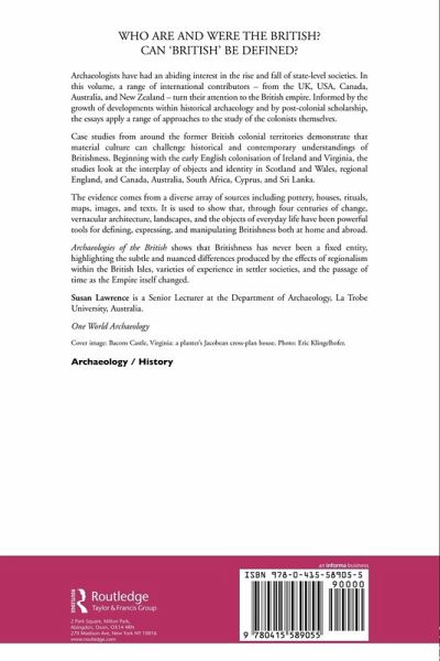 Beginning with the early English colonisation of Ireland and Virginia, the international range of contributors in Archaeology of the British examine the interplay of objects and identity in Scotland and Wales, regional England, Canada, Australia, South Africa, Cyprus, and Sri Lanka. Informed by developments in historical archaeology and by postcolonial scholarship, the case-studies in this volume look at the colonists themselves. The evidence draws upon includes vernacular architecture, landscapes, and objects of everyday life. Archaeologies of the British makes it clear that Britishness has never been a fixed entity, and that material culture can challenge historical and contemporary understandings of Britishness.