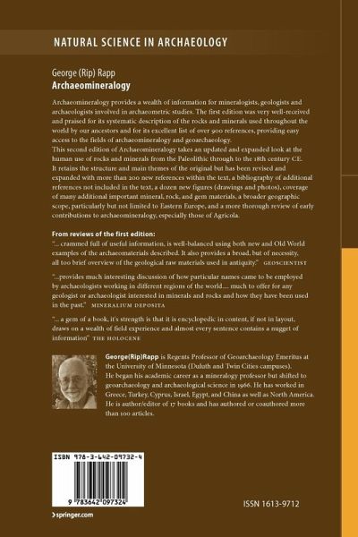 "Archaeomineralogy" provides a wealth of information for mineralogists, geologists and archaeologists involved in archaeometric studies. The first edition was very well-received and praised for its systematic description of the rocks and minerals used throughout the world by our ancestors and for its excellent list of over 900 references, providing easy access to the fields of archaeomineralogy and geoarchaeology.
