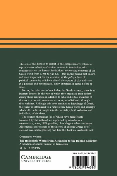 The aim of this book is to collect in one comprehensive volume a representative selection of ancient sources in translation, with commentary, on the history, institutions, society and economy of the Greek world from c. 750 to 338 B.C.
