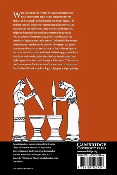 With contributions written by leading experts in the field, this volume explores the dialogue between Archaic and Classical Greek epigrams and their readers. The authors examine questions surrounding the identity of the speakers and the addressees. They also discuss the spatial, religious, historical and political contexts of epigram, as well as aspects of intertextuality, poetic variation and the creation of epigrammatic sub-genres. Collectively the volume demonstrates that the dominant view of epigram as a genre that became literary and artistic only in the Hellenistic period has to be revised. Archaic and Classical Greek epigrams did not simply serve the objects they describe but also demonstrate a high degree of aesthetic and literary achievement. This volume breaks new ground in the study of the genre and is important for scholars of classics, archaeology, epigraphy and papyrology.