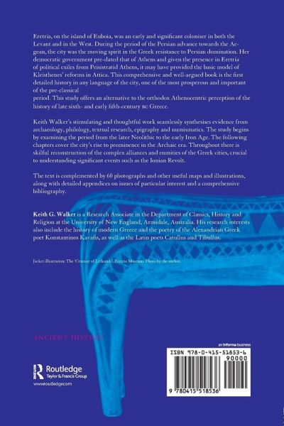 This book presents for the first time a history of Eretria during the Archaic Era, the city's most notable period of political importance and Keith Walker examines all the major elements of the city's success. One of the key factors explored is Eretria's role as a pioneer coloniser in both the Levant and the West - its early Aegaen 'island empire' anticipates that of Athens by more than a century, and Eretrian shipping and trade was similarly widespread. Eretria's major, indeed dominant, role in the events of central Greece in the last half of the sixth century, and in the events of the Ionian Revolt to 490 is clearly demonstrated, and the tyranny of Diagoras (c.538-509), perhaps the golden age of the city, is fully examined. Full documentation of literary, epigraphic and archaeological sources (most of which has previously been inaccessible to an English speaking-audience) is provided, creating a fascinating history and valuable resource for the Greek historian.