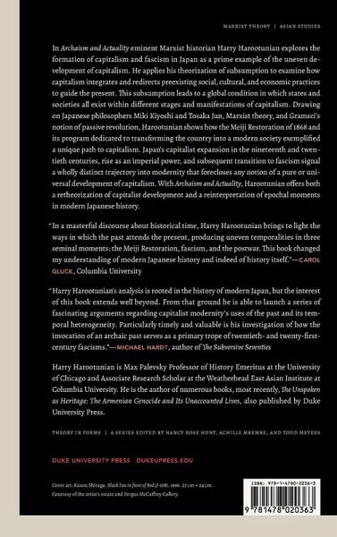 In Archaism and Actuality eminent Marxist historian Harry Harootunian explores the formation of capitalism and fascism in Japan as a prime example of the uneven development of capitalism. He applies his theorization of subsumption to examine how capitalism integrates and redirects preexisting social, cultural, and economic practices to guide the present. This subsumption leads to a global condition in which states and societies all exist within different stages and manifestations of capitalism. Drawing on Japanese philosophers Miki Kiyoshi and Tosaka Jun, Marxist theory, and Gramsci's notion of passive revolution, Harootunian shows how the Meiji Restoration of 1868 and its program dedicated to transforming the country into a modern society exemplified a unique path to capitalism. Japan's capitalist expansion in the nineteenth and twentieth centuries, rise as an imperial power, and subsequent transition to fascism signal a wholly distinct trajectory into modernity that forecloses any notion of a pure or universal development of capitalism. With Archaism and Actuality, Harootunian offers both a retheorization of capitalist development and a reinterpretation of epochal moments in modern Japanese history.