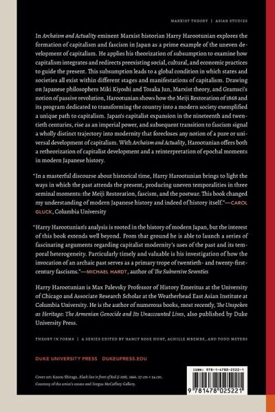 In Archaism and Actuality eminent Marxist historian Harry Harootunian explores the formation of capitalism and fascism in Japan as a prime example of the uneven development of capitalism. He applies his theorization of subsumption to examine how capitalism integrates and redirects preexisting social, cultural, and economic practices to guide the present. This subsumption leads to a global condition in which states and societies all exist within different stages and manifestations of capitalism. Drawing on Japanese philosophers Miki Kiyoshi and Tosaka Jun, Marxist theory, and Gramsci's notion of passive revolution, Harootunian shows how the Meiji Restoration of 1868 and its program dedicated to transforming the country into a modern society exemplified a unique path to capitalism. Japan's capitalist expansion in the nineteenth and twentieth centuries, rise as an imperial power, and subsequent transition to fascism signal a wholly distinct trajectory into modernity that forecloses any notion of a pure or universal development of capitalism. With Archaism and Actuality, Harootunian offers both a retheorization of capitalist development and a reinterpretation of epochal moments in modern Japanese history.