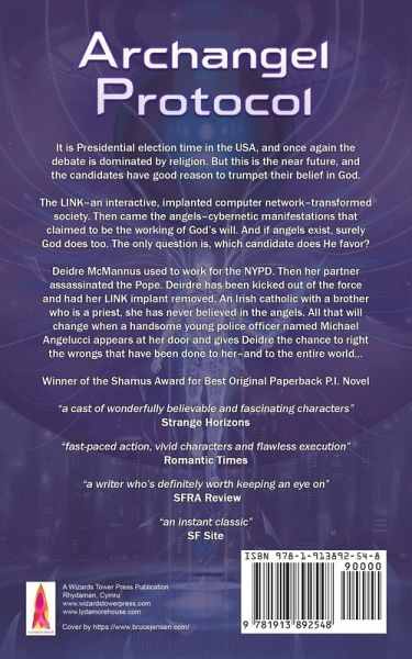 It is Presidential election time in the USA, and once again the debate is dominated by religion. But this is the near future, and the candidates have good reason to trumpet their belief in God. The LINK-an interactive, implanted computer network-transformed society. Then came the angels-cybernetic manifestations that claimed to be the working of God's will. And if angels exist, surely God does too. The only question is, which candidate does He favor? Deidre McMannus used to work for the NYPD. Then her partner assassinated the Pope. Deirdre has been kicked out of the force and had her LINK implant removed. An Irish catholic with a brother who is a priest, she has never believed in the angels. All that will change when a handsome young police officer named Michael Angelucci appears at her door and gives Deidre the chance to right the wrongs that have been done to her-and to the entire world...