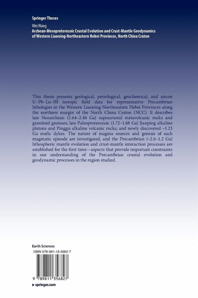 Introduction.- Geological background.- Neoarchean basement rock assemblage, crust-mantle interactions and crustal evolution of Western Liaoning Province.- Paleo- to Mesoproterozoic magmatic rock assemblage and crust-mantle geodynamic processes.- Precambrian crustal evolution, lithospheric mantle evolution and crust-mantle geodynamics of Western Liaoning-Northwest Hebei Provinces.- Concluding remarks.