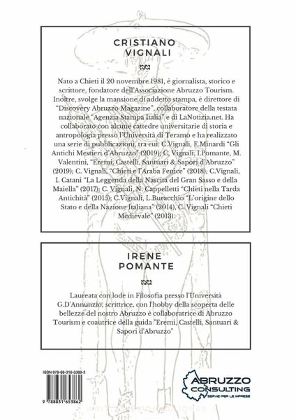 Una guida che funge da ausilio per chi desidera fare un turismo "esperenziale" sia culturale, sia enogastronomico di qualità. Conoscere la storia dell'Abruzzo e scoprire quali sono i prodotti tipici del territorio, dove sono venduti, e quali sono i luoghi in cui si sono conservati importanti siti archeologici: musei, necropoli, acquedotti, monumenti funerari, mosaici, ponti, teatri e anfiteatri, templi, terme, tombe e tanto altro; una risorsa importantissima per il turismo in Abruzzo. Proprio in Abruzzo, nel 90 a.C., i popoli italici (Vitelios) che abitavano da circa otto secoli l'Appenino centro - meridionale, si riunirono a Corfinio e coniarono la parola Italia (Viteliù in lingua Osca). Le genti d'Abruzzo, Marsi, Peligni, Vestini, Marrucini, Piceni, Frentani, Pretuzi, si radunarono nella capitale della Lega Italica Corfinio, insieme a popolazioni meridionali di origine sannita, per ottenere la tutela dei propri diritti e dichiarare guerra alla Res Publica Romana. Le loro civiltà rivivono, in questa opera, in cui sono indicati i luoghi dove vedere ancora le tracce della civiltà romano - italica in Abruzzo. Le tappe del percorso sono selezionate in base alle esperienze di viaggio dell'Associazione Abruzzo Tourism. I percorsi partono dalle seguenti città: Vasto, Castel di Sangro Tagliacozzo, Alba Adriatica, conurbazione Chieti - Pescara dove c'è l'aeroporto.