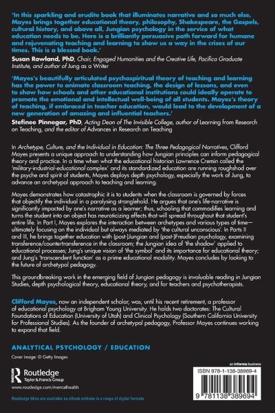 In Archetype, Culture, and the Individual in Education: The Three Pedagogical Narratives, Clifford Mayes presents a unique approach to understanding how Jungian principles can inform pedagogical theory and practice. In a time when what the educational historian Lawrence Cremin called the 'military-industrial-educational complex' and its standardized education are running roughshod over the psyche and spirit of students, Mayes deploys depth psychology, especially the work of Jung, to advance an archetypal approach to teaching and learning. Mayes demonstrates how catastrophic it is to students when the classroom is governed by forces that objectify the individual in a paralysing stranglehold. He argues that one's life-narrative is significantly impacted by one's narrative as a learner; thus, schooling that commodifies learning and turns the student into an object has neuroticizing effects that will spread throughout that student's entire life. In Part I, Mayes explores the interaction between archetypes and various types of time-ultimately focusing on the individual but always mediated by 'the cultural unconscious'. In Parts II and III, he brings together education with (post-)Jungian and (post-)Freudian psychology, examining transference/countertransference in the classroom; the Jungian idea of 'the shadow' applied to educational processes; Jung's unique vision of 'the symbol' and its importance for educational theory; and Jung's 'transcendent function' as a prime educational modality. Mayes concludes by looking to the future of archetypal pedagogy. This groundbreaking work in the emerging field of Jungian pedagogy is invaluable reading in Jungian Studies, depth psychological theory, educational theory, and for teachers and psychotherapists.