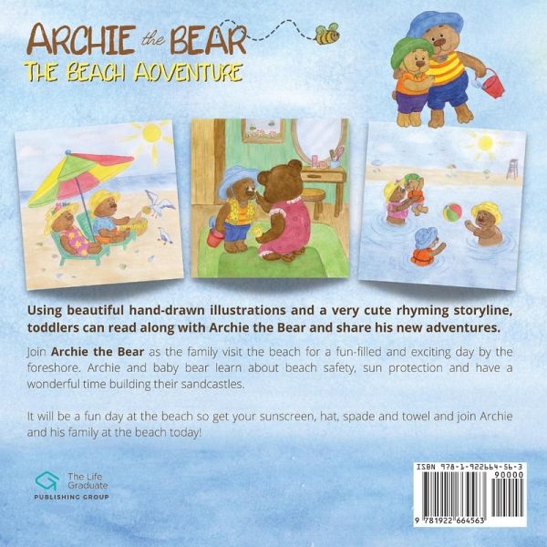 Bestselling Children's Book author Rom Nelson brings a New Adventure to Kids as Archie the Bear visits the beach for some fun in the sun! Join Archie the Bear on his exciting adventure to the beach! This beautifully hand-drawn illustrated book is perfect for young toddlers or children learning to read. The adorable rhyming storyline will keep your little ones engaged and wanting more as they read along with Archie the Bear and Baby Bear. As they arrive at the beach, Archie and Baby Bear learn about important safety tips, such as applying sun cream and swimming safely in the sea. They explore the rock pools and discover all the amazing creatures that live there. But the real fun begins when they start making sandcastles on the beach. This book is not only a fun and engaging read, but it's also a great tool for parents, grandparents, and educators to discuss important beach safety and sun protection with young children. The colorful illustrations and rhyming storyline are easy-to-follow making it an ideal addition to any child's book collection. Let Archie the Bear take your child on a journey of fun and learning at the beach. Product Features: - Large 8.5 x 8.5" Paperback, Hardback and Ebook Format available - Full color, hand-drawn illustrations throughout - 30 Pages in length - Large Writing and Rhyming Storyline - Perfect for Toddlers!
