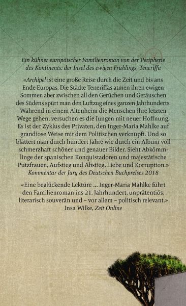 'Archipel' ist eine große Reise durch die Zeit und bis ans Ende Europas. Die Städte Teneriffas atmen ihren ewigen Sommer, aber zwischen all den Gerüchen und Geräuschen des Südens spürt man den Luftzug eines ganzen Jahrhunderts. Während in einem Altenheim die Menschen ihre letzten Wege gehen, versuchen es die Jungen mit neuer Hoffnung. Es ist der Zyklus des Privaten, den Inger-Maria Mahlke auf grandiose Weise mit dem Politischen verknüpft. Und so blättert man durch hundert Jahre wie durch ein Album voll schmerzhaft schöner und genauer Bilder. Sieht Abkömmlinge der spanischen Konquistadoren und majestätische Putzfrauen, Aufstieg und Abstieg, Liebe und Korruption. deutscher-buchpreis.de 20180911