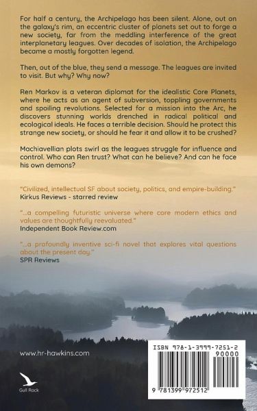 For half a century, the Archipelago has been silent. Alone, out on the galaxy's rim, an eccentric cluster of planets set out to forge a new society, far from the meddling interference of the great interplanetary leagues. Over decades of isolation, the Archipelago became a mostly forgotten legend. Then, out of the blue, they send a message. The leagues are invited to visit. But why? Why now? Ren Markov is a veteran diplomat for the idealistic Core Planets, where he acts as an agent of subversion, toppling governments and spoiling revolutions. Dispatched on a mission into the Arc, Ren discovers stunning worlds and a radical, ecologically obsessed society that is both compelling and disturbing. But he faces a terrible decision. Should he protect this strange new society, or should he fear it and allow it to be crushed? Machiavellian plots swirl as the leagues struggle for influence and control. 'Archipelago' takes readers on a journey through interstellar politics, revolution, and the diverging ethics of a vast diaspora. Ren is in search of his very identity as he chooses between salvation and annihilation.