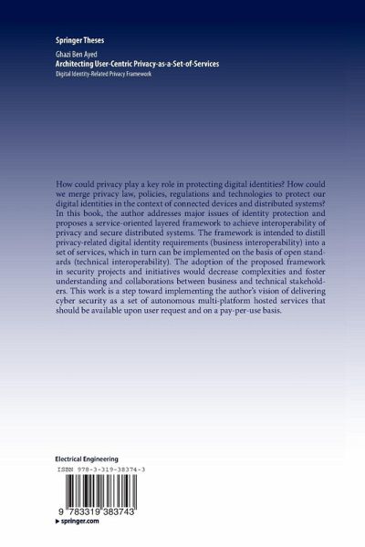 How could privacy play a key role in protecting digital identities? How could we merge privacy law, policies, regulations and technologies to protect our digital identities in the context of connected devices and distributed systems? In this book, the author addresses major issues of identity protection and proposes a service-oriented layered framework to achieve interoperability of privacy and secure distributed systems. The framework is intended to distill privacy-related digital identity requirements (business interoperability) into a set of services, which in turn can be implemented on the basis of open standards (technical interoperability). The adoption of the proposed framework in security projects and initiatives would decrease complexities and foster understanding and collaborations between business and technical stakeholders. This work is a step toward implementing the author's vision of delivering cyber security as a set of autonomous multi-platform hosted services that should be available upon user request and on a pay-per-use basis.