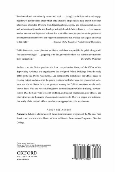 This unique and carefully researched study traces the evolution and accomplishments of the Office of the Supervising Architect of the United States - the office that from 1852 until 1939 held a virtual monopoly over federal building design. Among its more memorable buildings are the Italianate U.S. Mint in Carson City, the huge granite pile of the State, War, and Navy Building in Washington, D.C., the towering U.S. Post Office in Nashville, New York City's neo-Renaissance customhouse, and such "restorations" as the ancient adobe Palace of the Governors in Santa Fe. In tracing the evolution of the Office and its creative output, Antoinette J. Lee evokes the nation's considerable efforts to achieve an appropriate civic architecture.