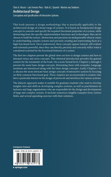 This book presents a design methodology that is practically applicable to the architectural design of a broad range of systems. It is based on fundamental design concepts to conceive and specify the required functional properties of a system, while abstracting from the specific implementation functions and technologies that can be chosen to build the system. Abstraction and precision are indispensable when it comes to understanding complex systems and precisely creating and representing them at a high functional level. Once understood, these concepts appear natural, self-evident and extremely powerful, since they can directly, precisely and concisely reflect what is considered essential for the functional behavior of a system. The first two chapters present the global views on how to design systems and how to interpret terms and meta-concepts. This informal introduction provides the general context for the remainder of the book. On a more formal level, Chapters3 through 6 present the main basic design concepts, illustrating them with examples. Language notations are introduced along with the basic design concepts. Lastly, Chapters 7 to 12 discuss the more intricate basic design concepts of interactive systems by focusing on their common functional goal. These chapters are recommended to readers who have a particular interest in the design of protocols and interfaces for various systems.